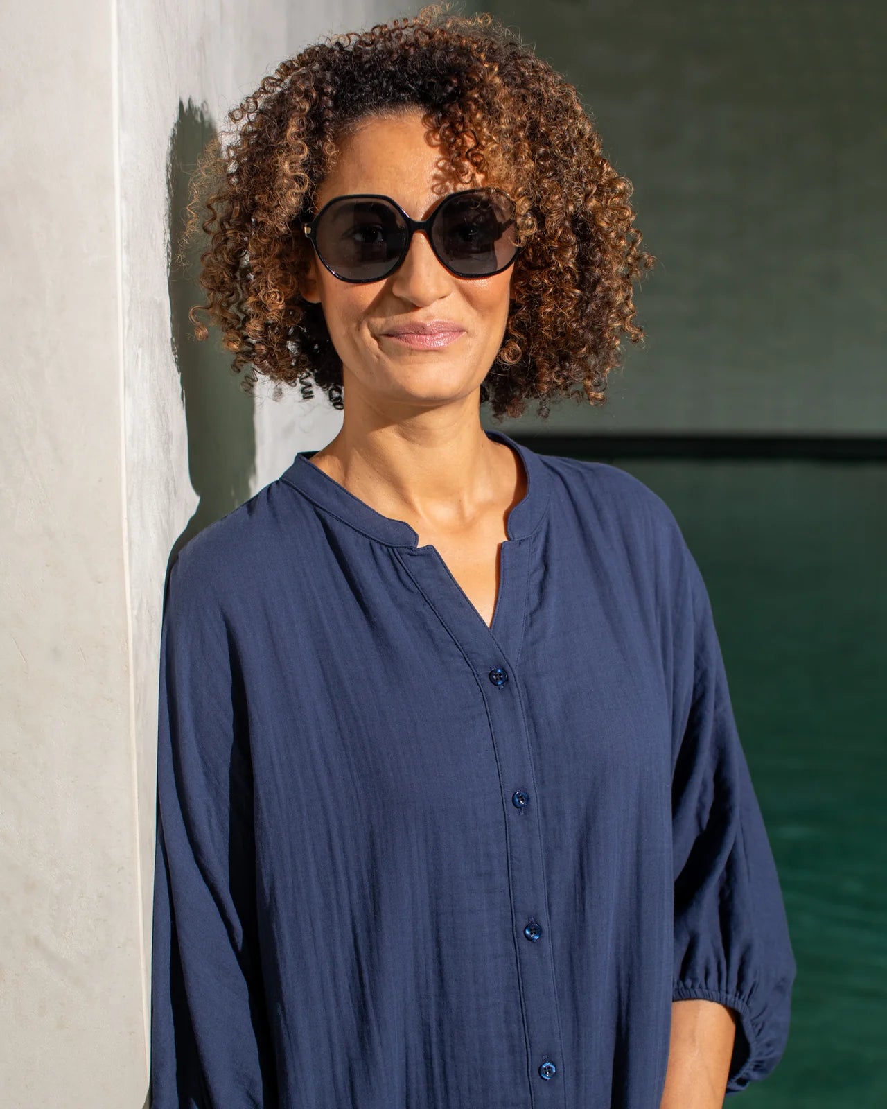 The Dora Dress is a midi length, double gauze dress finished with a grandad collar and button up front. Dora has a stunning elasticated 3/4 length puff sleeve creating a unique silhouette.