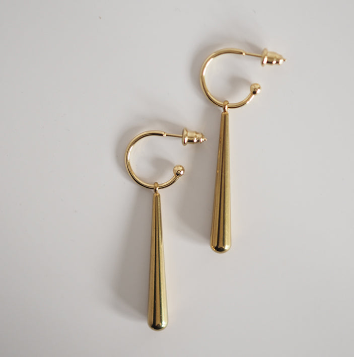 Gold-plated stainless steel teardrop and stud loop with gold plated earring backs.